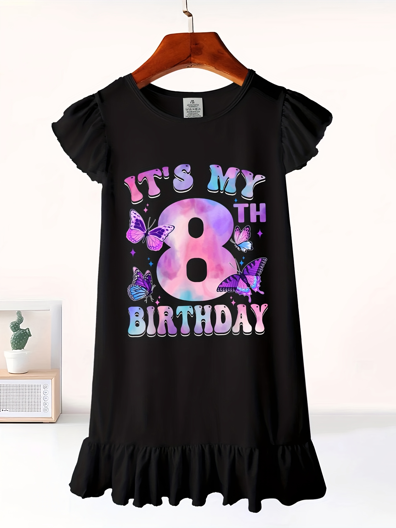 It's My 8th Birthday Butterfly Theme 8 Year Old Party Girl Dress with Flutter Sleeves - Sleeveless Dress for Girl Kid