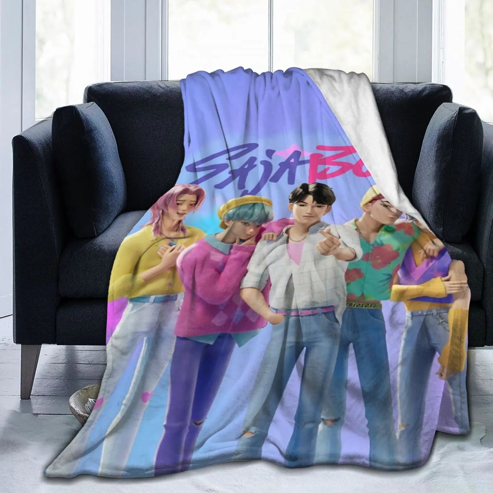 K Pop Demon Hunter Anime Inspired Flannel Throw Blanket Soft Cozy All Season Versatility For Couch Office Bed Camping