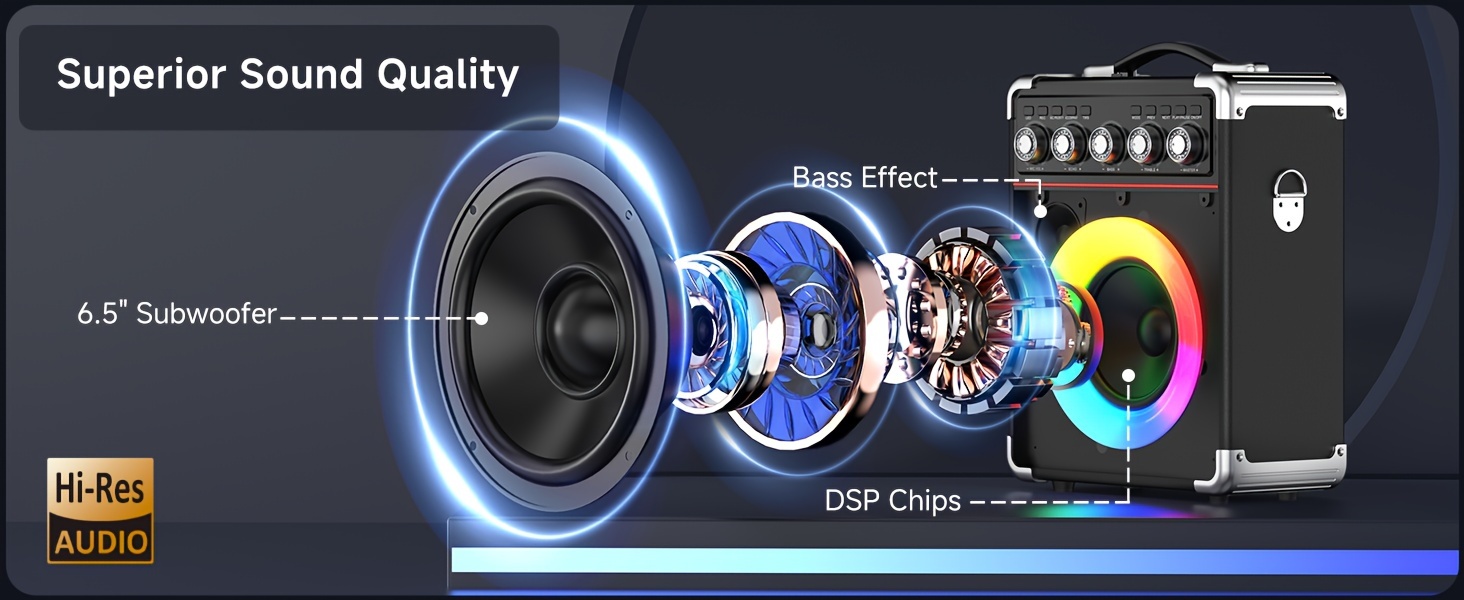 Karaoke Machine, with 2 Wireless Karaoke Microphones, Party Speaker with Bass/Treble Adjustment, DJ Lights, Portable Speaker for Home Party, Birthday, Gatherings, Christmas Gift