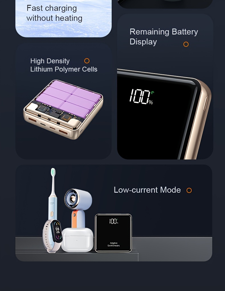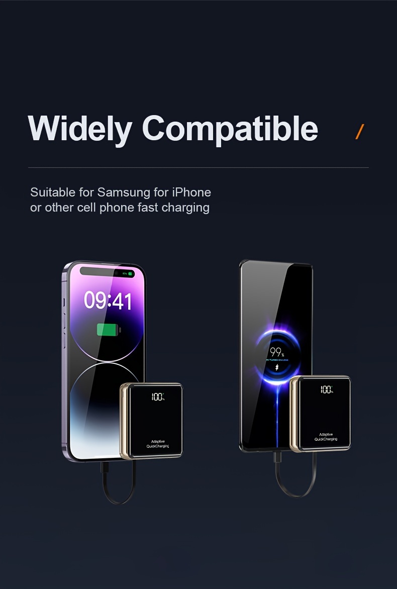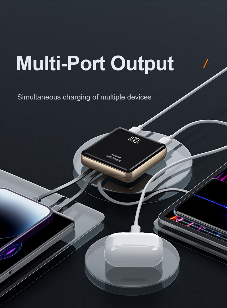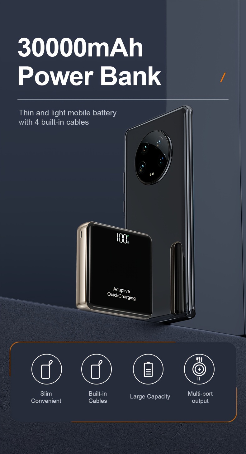 KAXOE 30000mAh 20000mAh High-Capacity Super Fast Charging Power Bank Portable Charger Fast Charging with LED Display Built-in 4 Cables Mobile Battery for iPhone for Samsung for Tablet