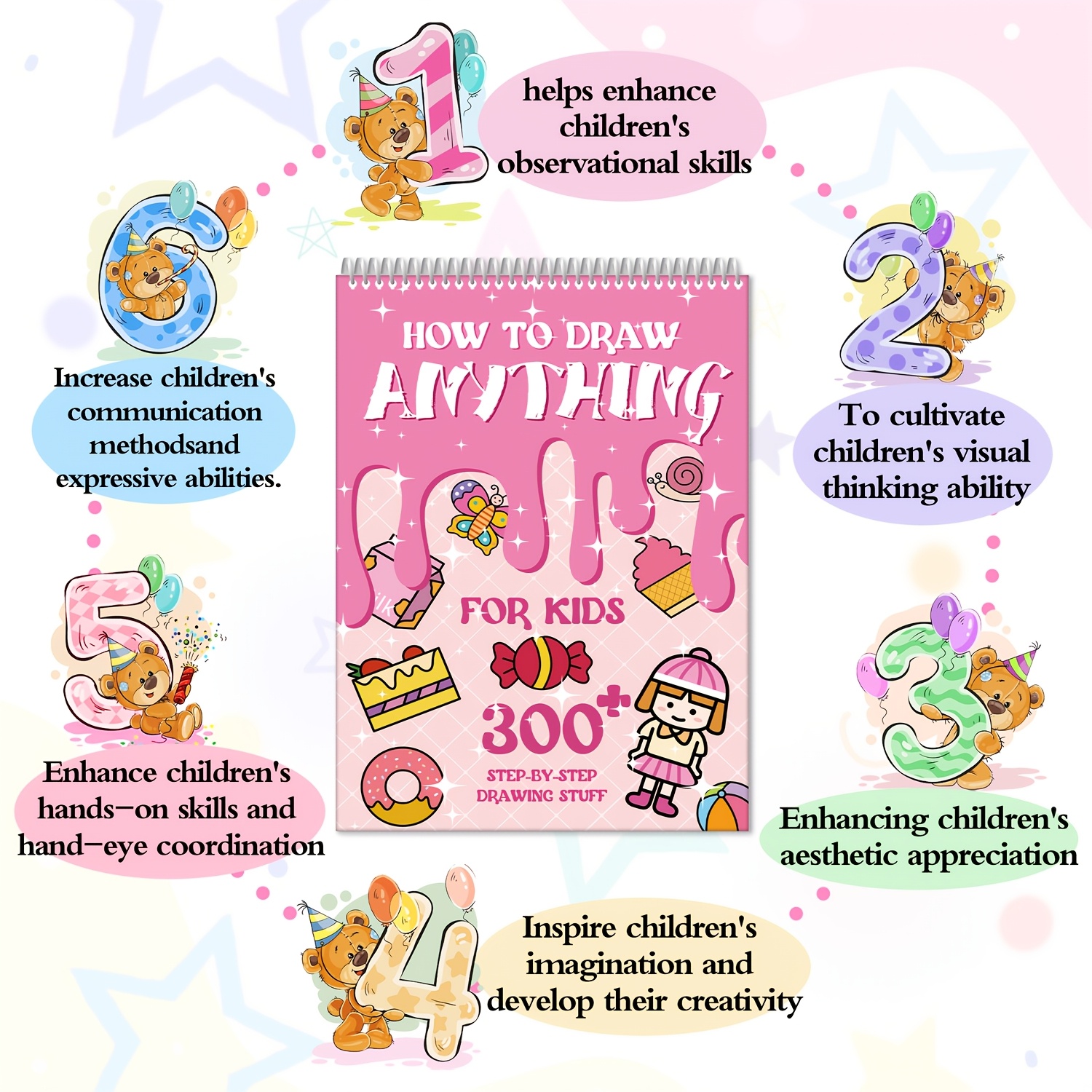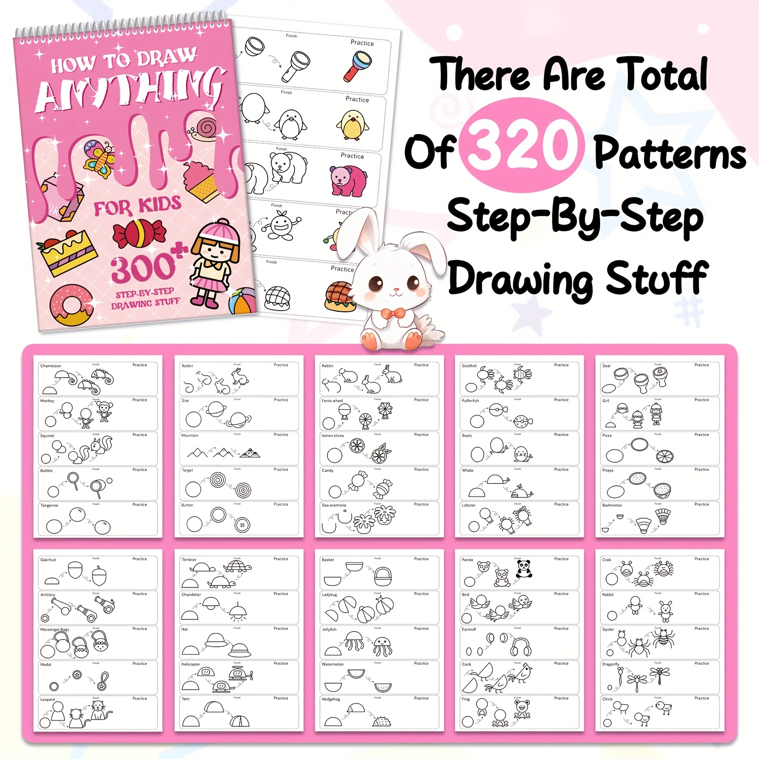 Kids Drawing Sketchbook - How to Draw Anything for Children Ages 3-6, 300+ Step-by-Step Drawing Lessons, Creative Art Projects, Cartoon Characters & Animals, Durable Art Paper, with Educational Activity Book for Preschool & K