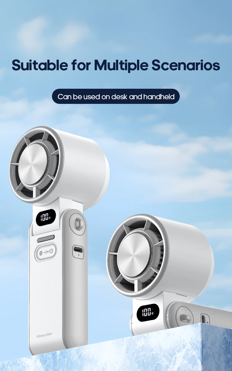 Kinscoter Outdoor Foldable Handheld Fan Rechargeable 3600mAh Portable Turbo High Speed 100 Level Adjustable