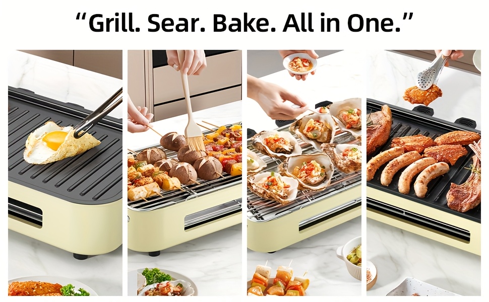 Kitchen Electric Barbecue Grill, Fully Detachable Non-Stick and Easy to Clean, With Frying Pan Grille and Waffle Maker Three Hand Trays, Adjustable Temperature 1500W, Made of Stainless Steel, Gift for Christmas Housewarming B