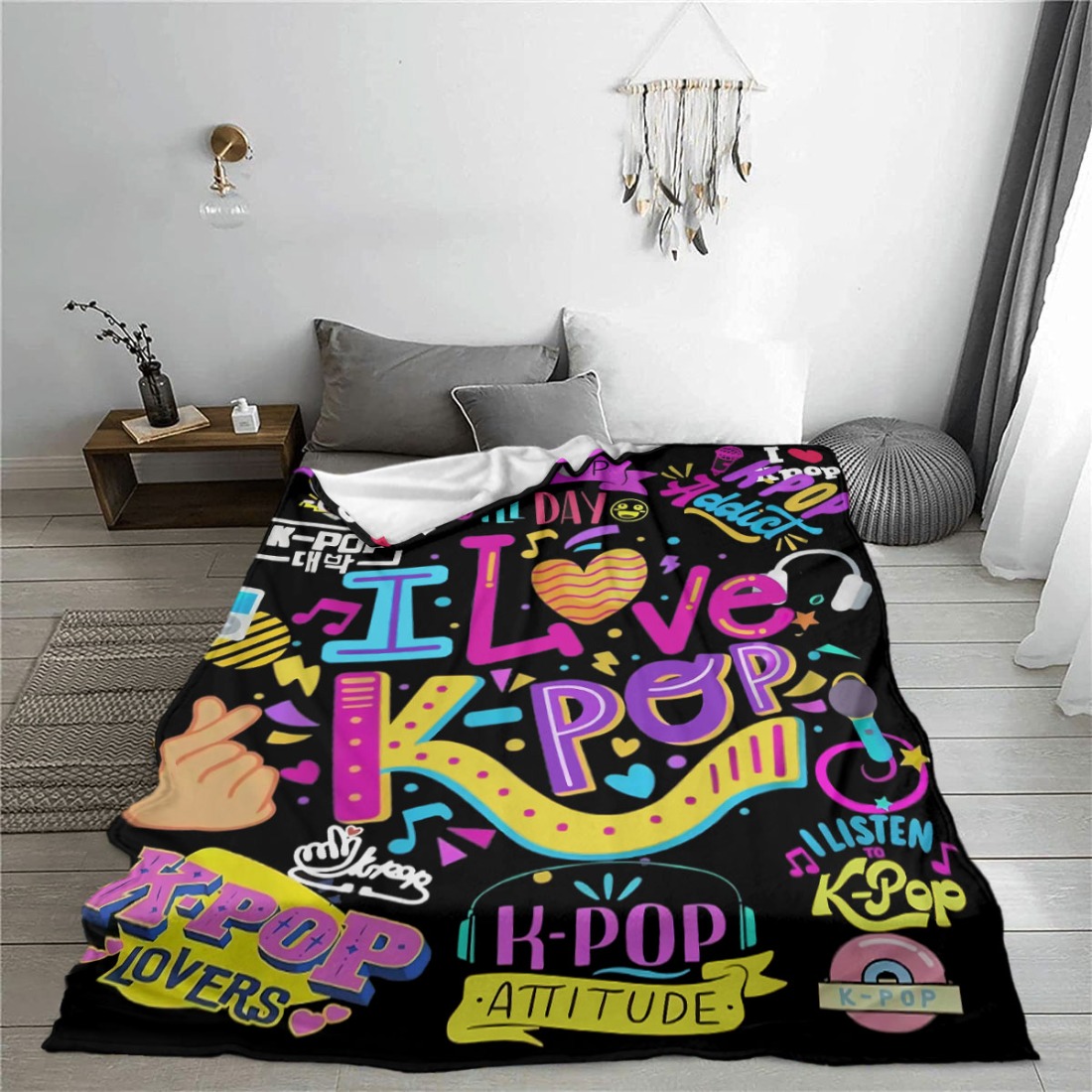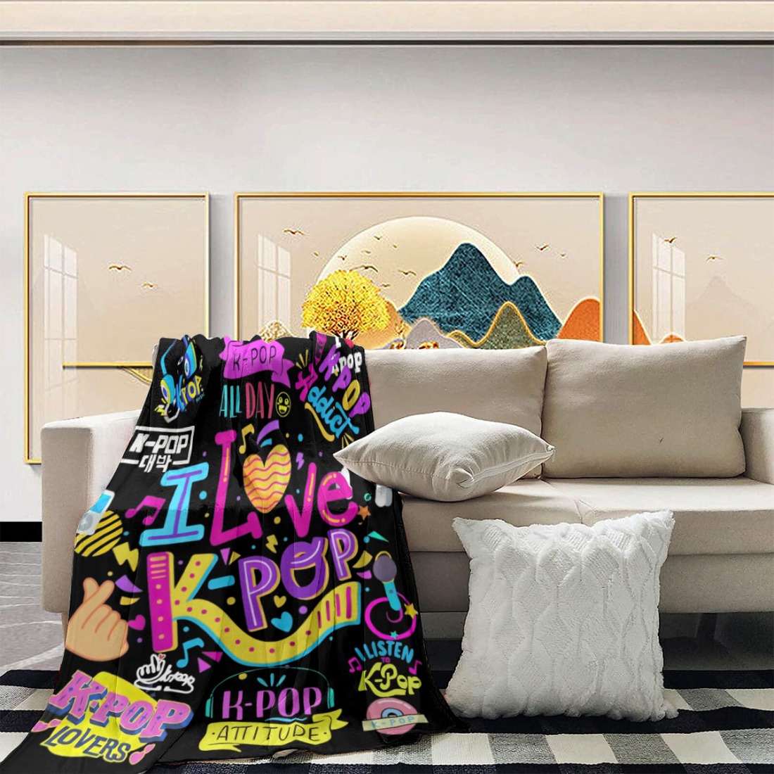 Kpop Digital Print Gift Blanket for Girls - Soft Flannel Throw with Vibrant K-Pop Design, Perfect for Birthdays, Halloween, Christmas - Ideal for Bed, Sofa, Chair, Living Room, Travel - All-Season Use, Kpop Blanket, Best for