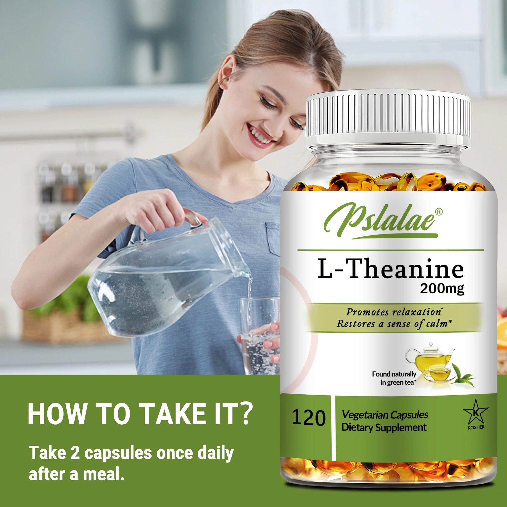 L-Theanine 200 Mg - Relieve Stress, Maintain A Calm and Relaxed Mood, Improve Concentration - 120 Capsules