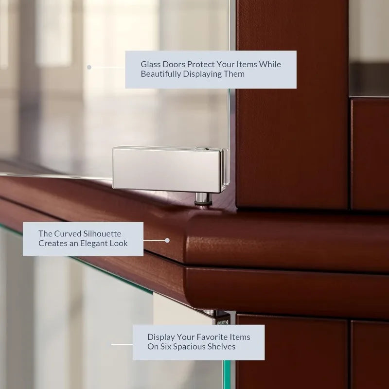- Timeless, natural design: choose from Cherry, Walnut, Oak, Black, or White to match your decor, with a curved silhouette and tempered glass doors that frame your treasures.