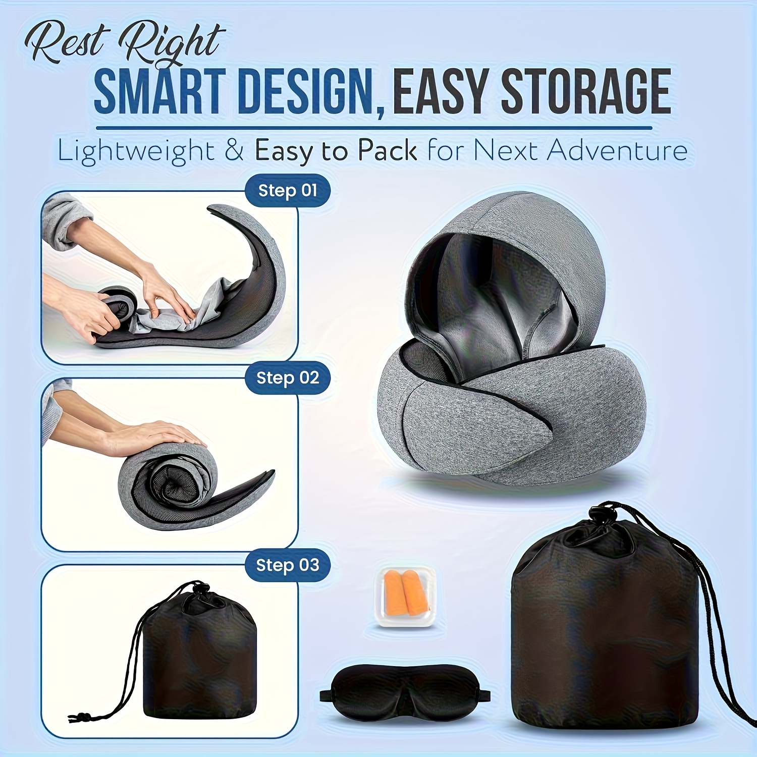 Long-Distance Travel Pillow | Comfortable & Breathable Neck Pillow with Pillowcase, Portable Storage Bag | Ideal for Flights, Home Rest, Car Trips, Sleep Aid, Travel Cushion, for flight Accessories