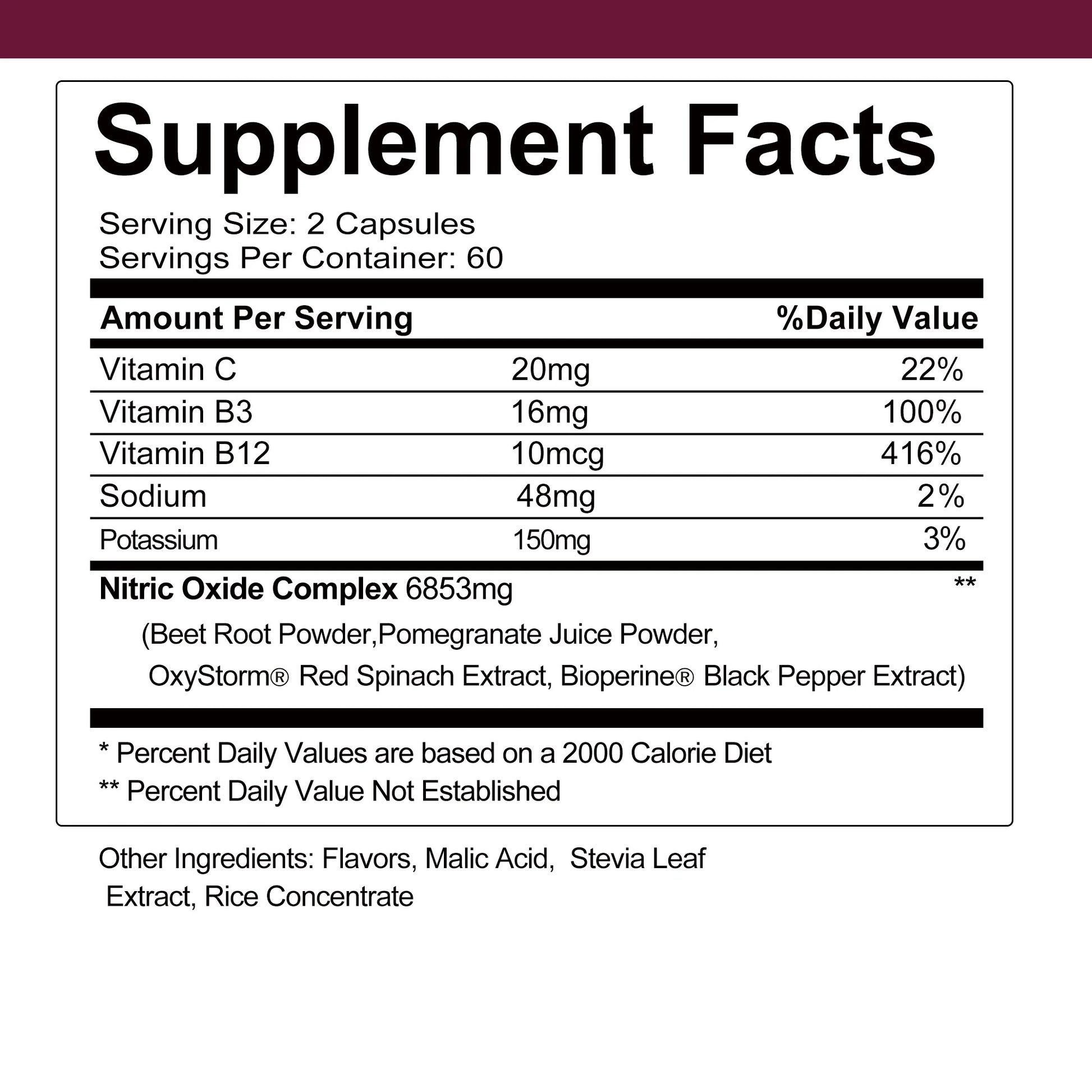 Blood Pressure Support – Using nitric oxide capsules can help relax and dilate blood vessels, which can boost nitric oxide production, improve circulation, and maintain healthy blood pressure.
