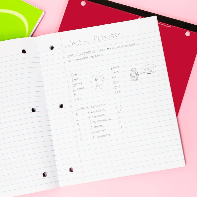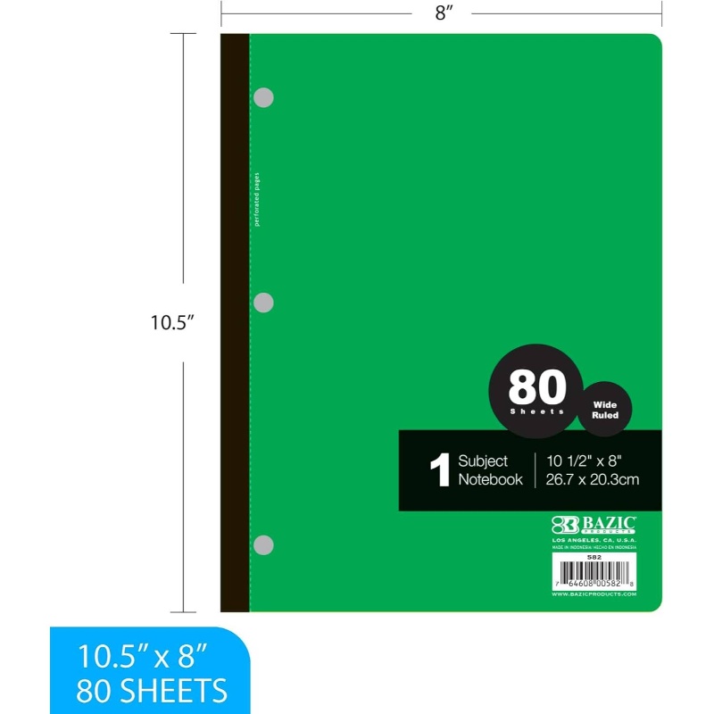 Notebook Wide Ruled 1 Subject 80 Sheets Wireless Notebooks, 3 Punched Holes Lined Composition Book, Assorted Color, 24 - Pack