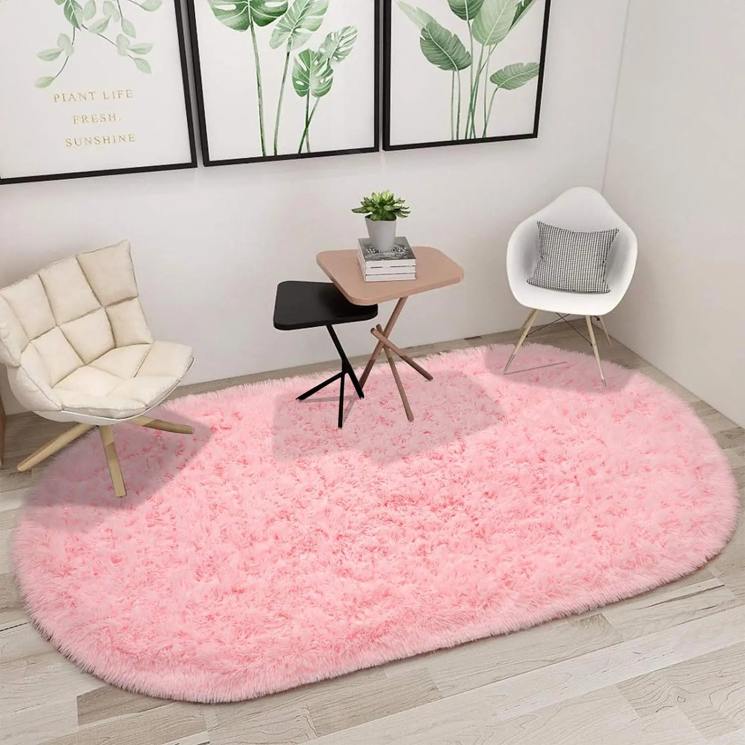 Oval Fluffy Ultra Soft Shag Area Rug for Bedroom Nursery