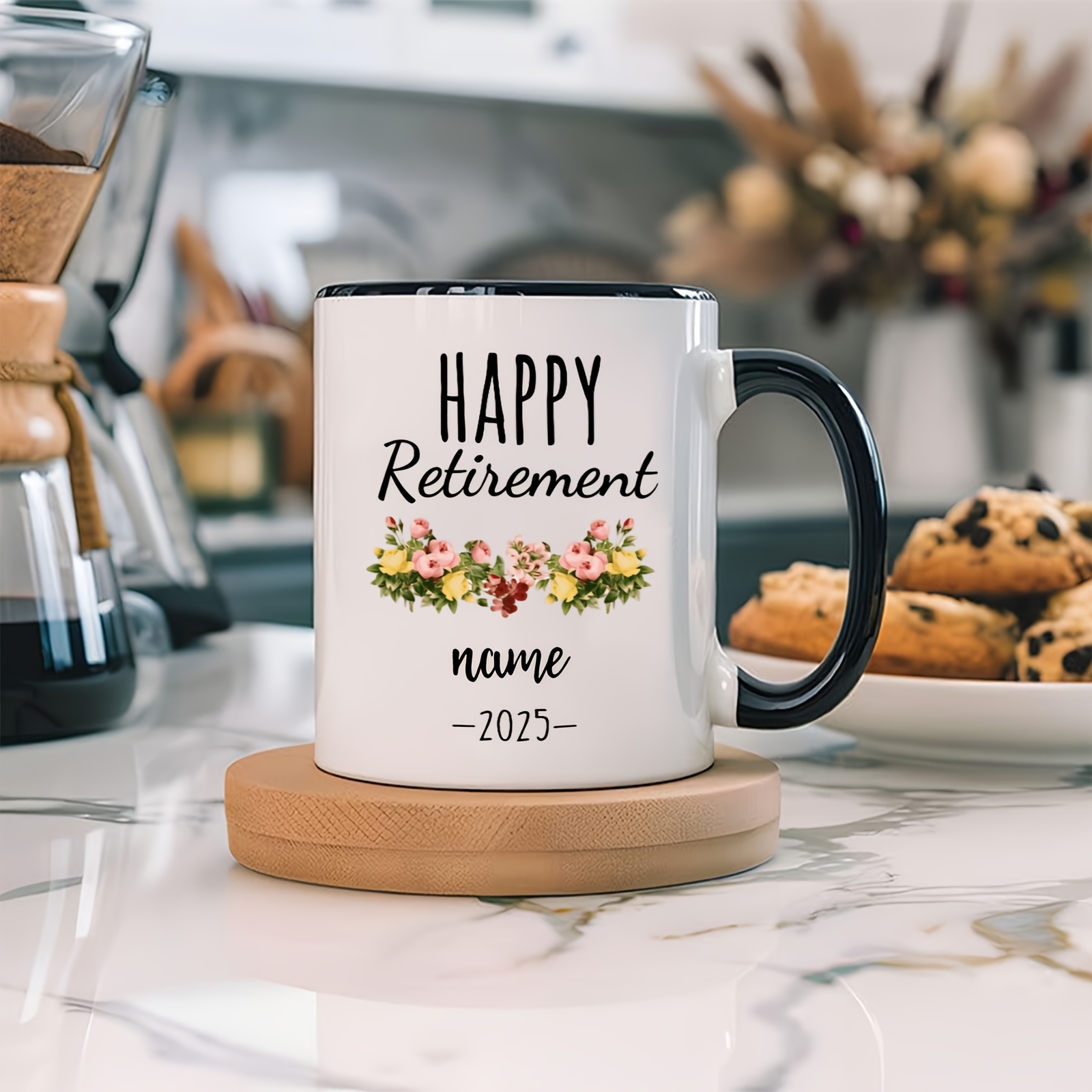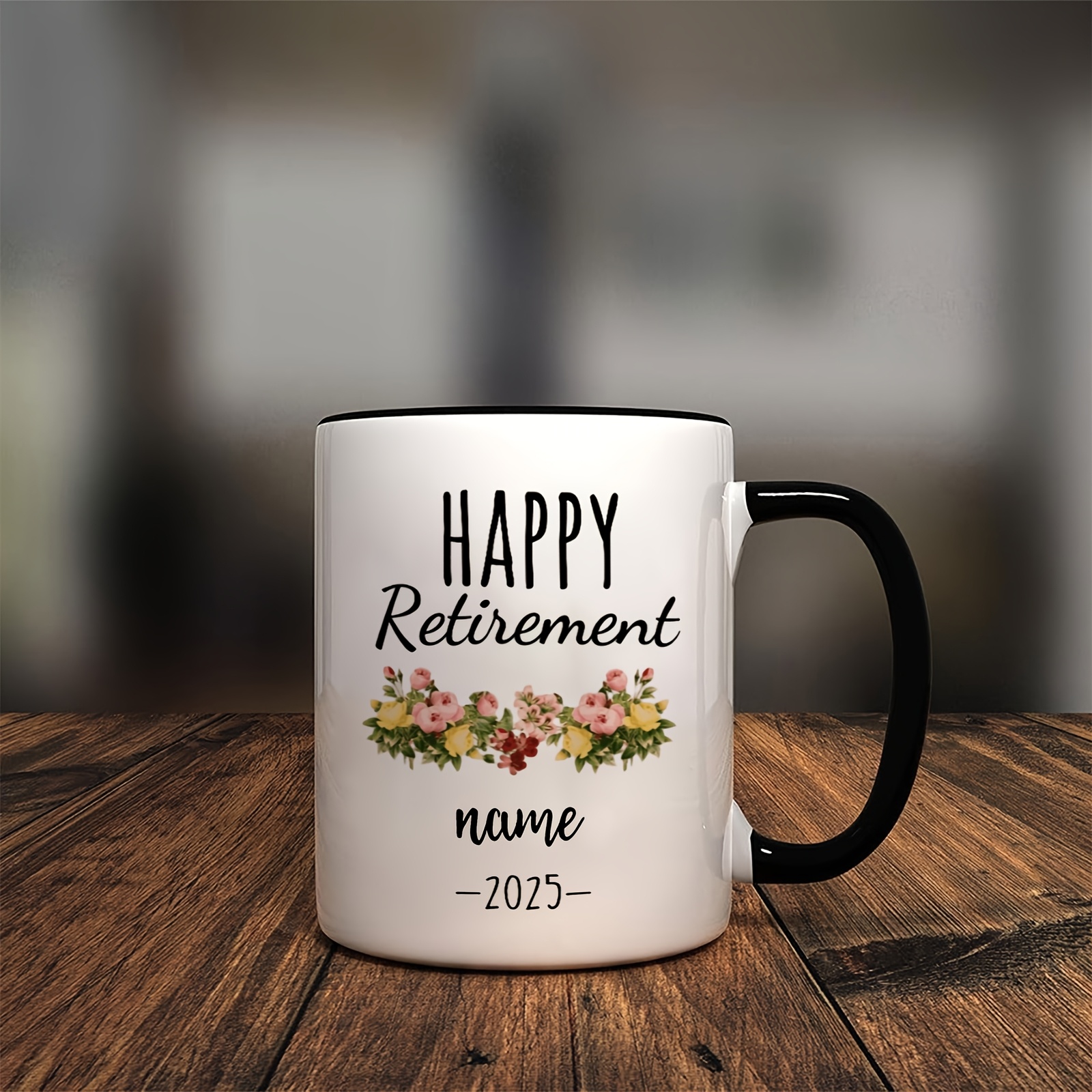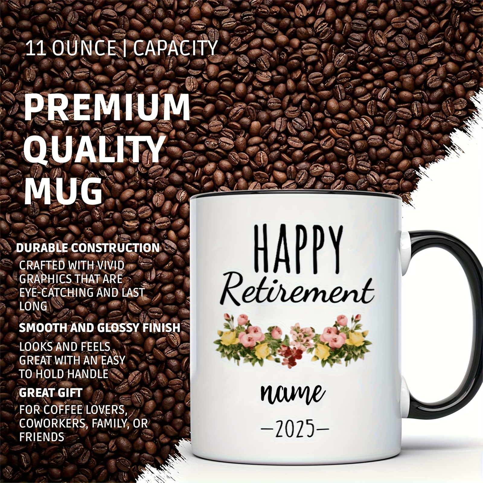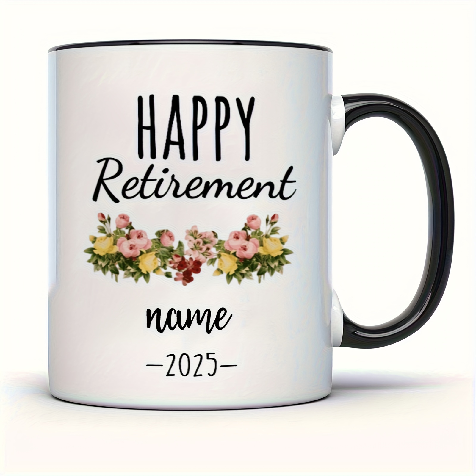 Personalized Retirement Mug - Custom Name & Year, Elegant Floral Design, Dishwasher-Safe Ceramic Cup - Perfect for Retirees, Christmas, Halloween, Thanksgiving Gifts - Ideal for Home, Office, or Coffee Bar - Exclusive Coffee