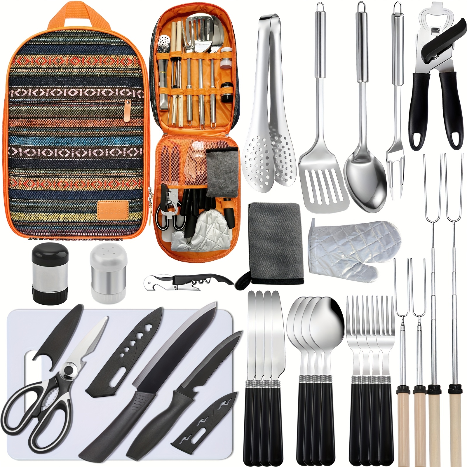 Portable Camping Kitchen Utensil Set-31pcs Camping Essentials Camping Accessories Gear Must Haves Camping Cookware Kit, Stainless Steel Outdoor Cooking And Grilling Utensil Organizer Travel Set Perfect for Travel, Picnics, RV