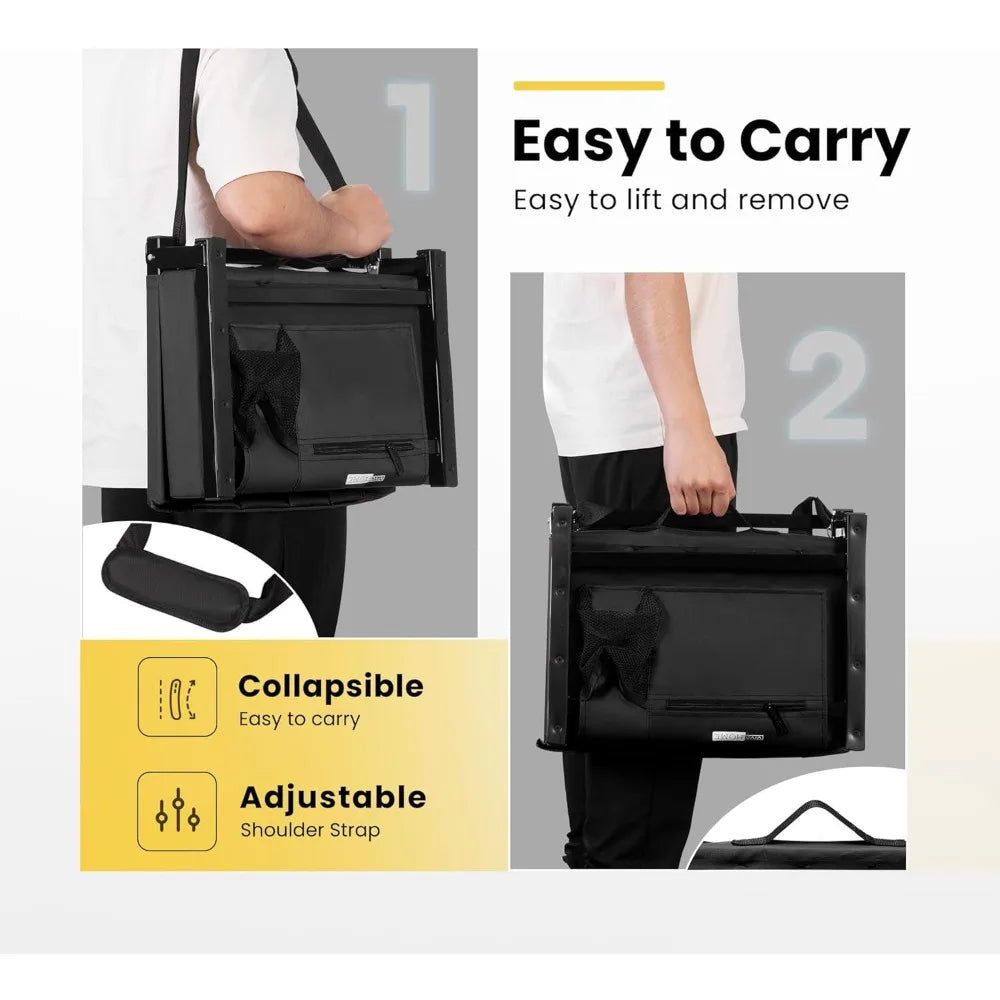 - Easy to carry and set up: You carry just 7.7 lbs; folds flat for quick transport; enjoy the carrying strap and padded 1.6" shoulder strap; fold-and-go design with built-in back support.