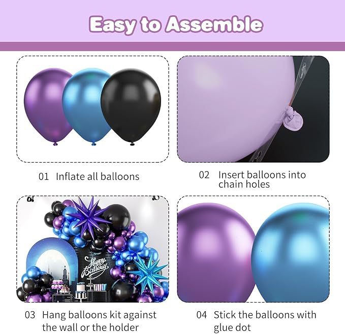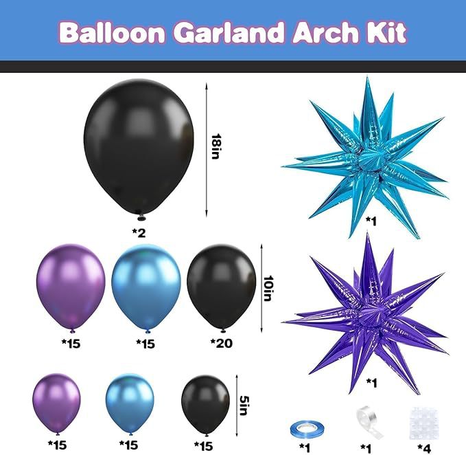 Purple and blue aluminum film explosion star balloon chain set, birthday decoration, wedding arrangement, balloon wreath, metal balloon, wedding engagement, birthday balloon decoration