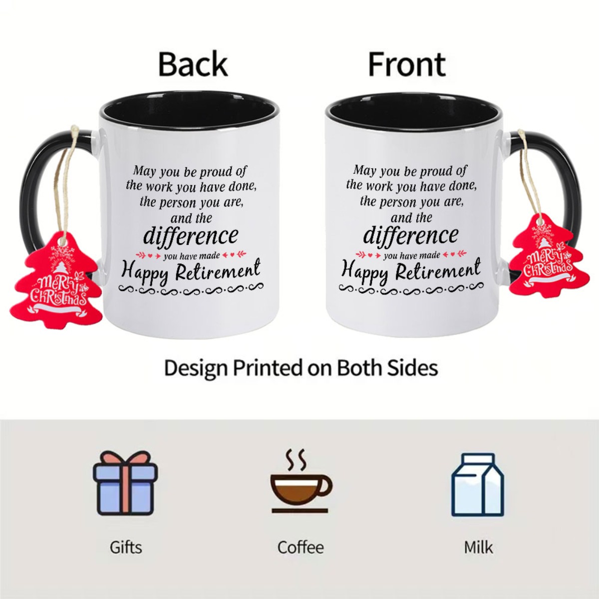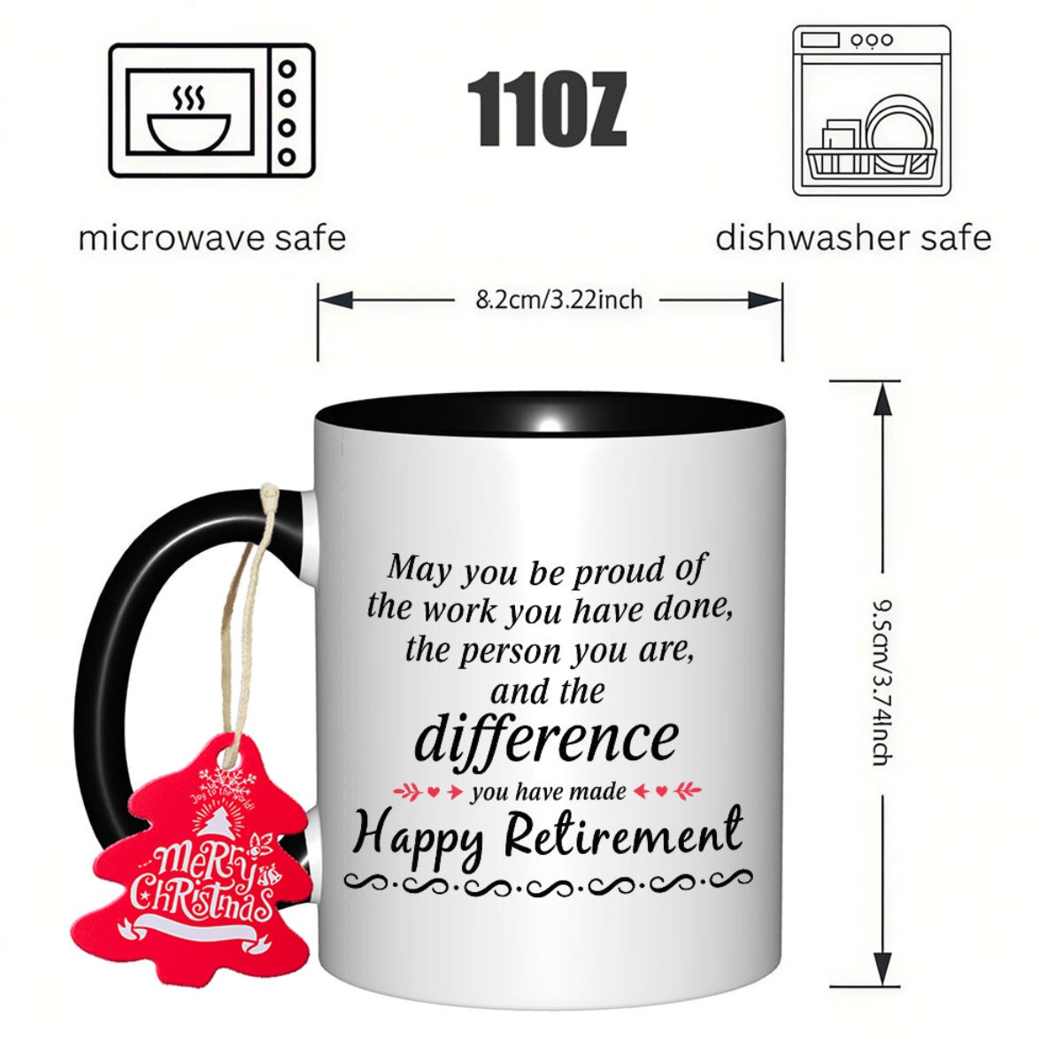Retirement Ceramic Coffee Mug with "Happy Retirement" Message - Durable, Non-Slip, Hand Wash Only, Ideal for Grandma, Christmas, Thanksgiving, Halloween, Holiday Gift|Playful Design|Metallic Construction, or Birthday Gift, Re