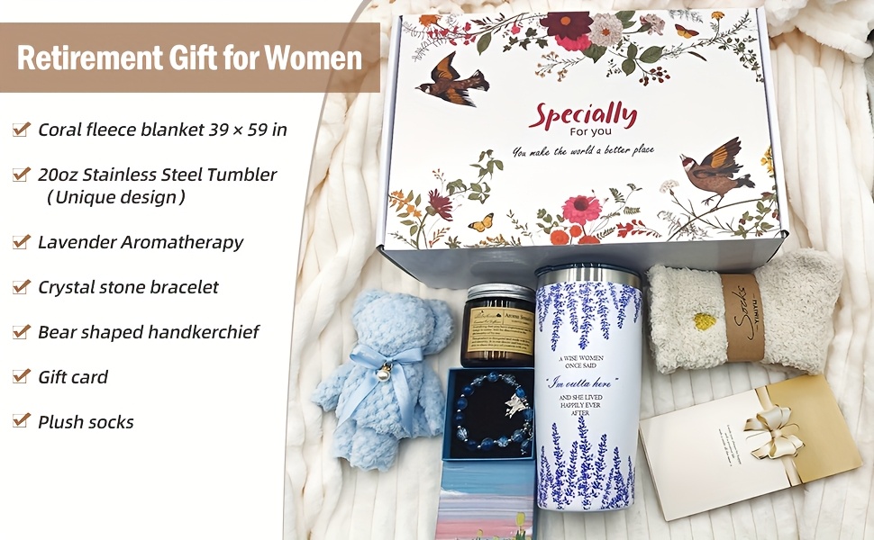 Retirement Gifts For Women 2025, Happy Retirement Gifts For Women Coworker, Teacher, Nurse, Mom, Grandma, Retired Gift Basket With Blanket, 20 OZ Tumbler