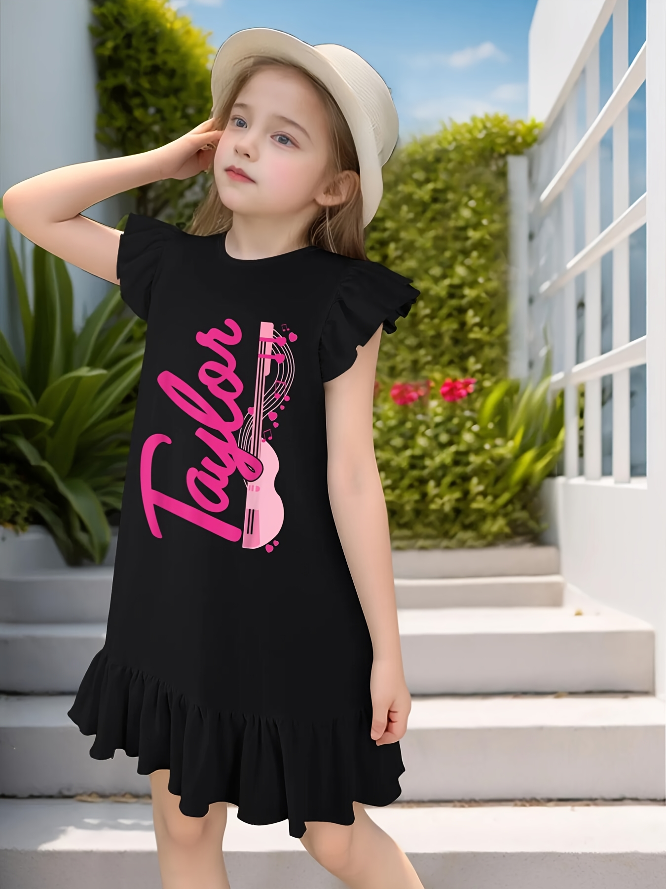 Retro Taylor First Name Personalized Groovy 80'S Dress With Flutter Sleeves - Sleeveless Dress For Girl Kid