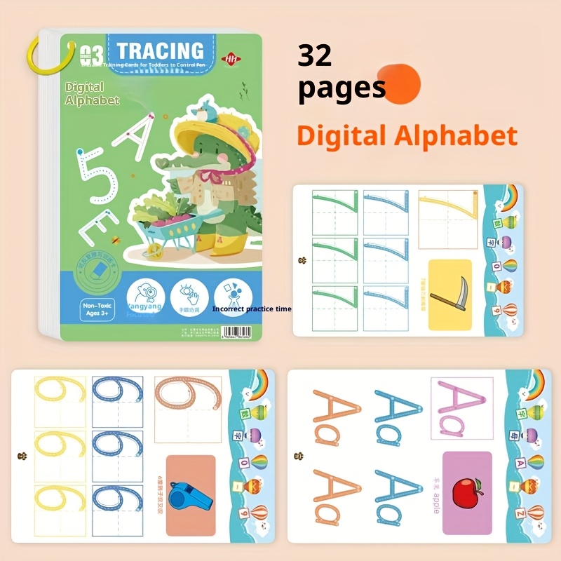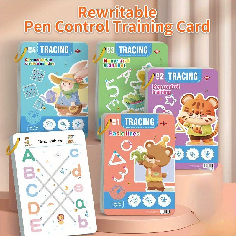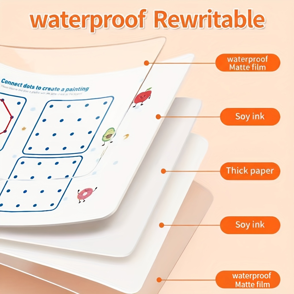 Rewritable Pen Control Training Books for Ages 3-6, 4-in-1 Toddler Writing, 128pages Inclued 10 Pens, Reusable Educational Activity Book with Erasable Function, Rewritable Training Set Preschool, Educational Gift, Birthday Pr