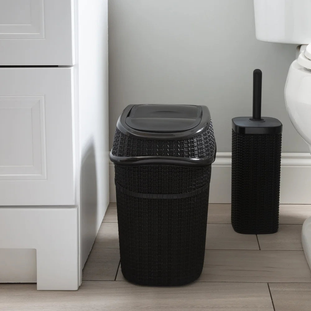 - 9.5-liter trash can with an easy-swing lid traps odors, prevents splashes, and opens smoothly for quick disposal in your bathroom.