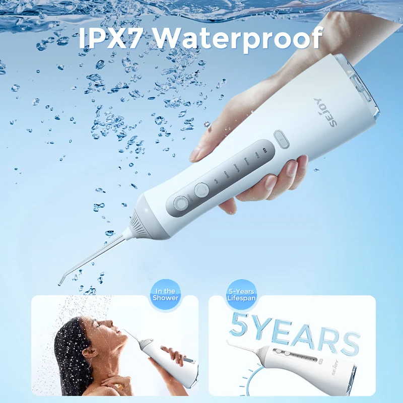 Sejoy Cordless Oral Irrigator Water Flosser 6 Cleaning Modes 350ml Tank IPX7 Waterproof for Home Travel