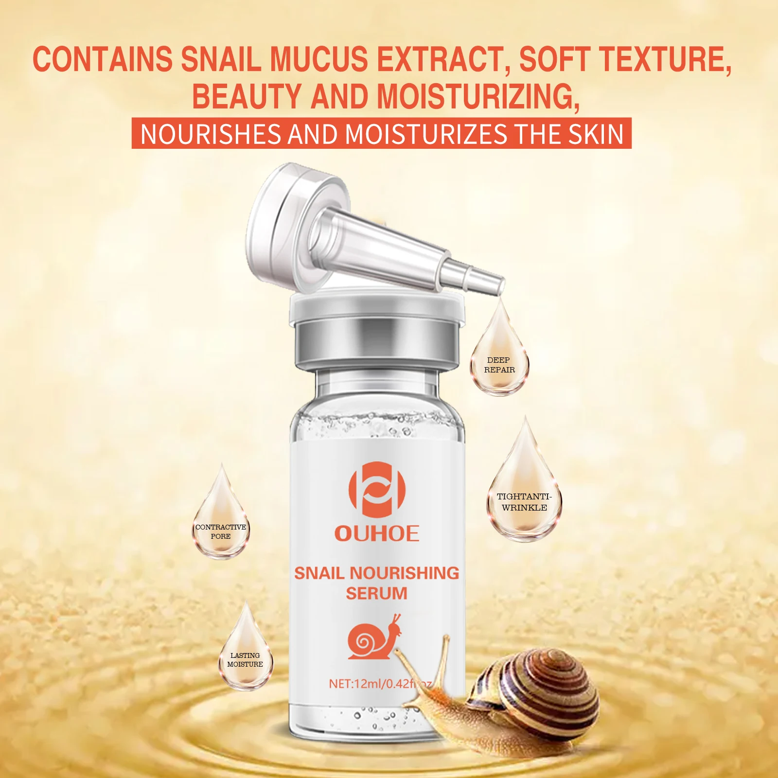 Transform your complexion with Ouhoe Snail Essence Nourishing Repair Serum, designed to hydrate, brighten, and repair skin affected by acne and scars.