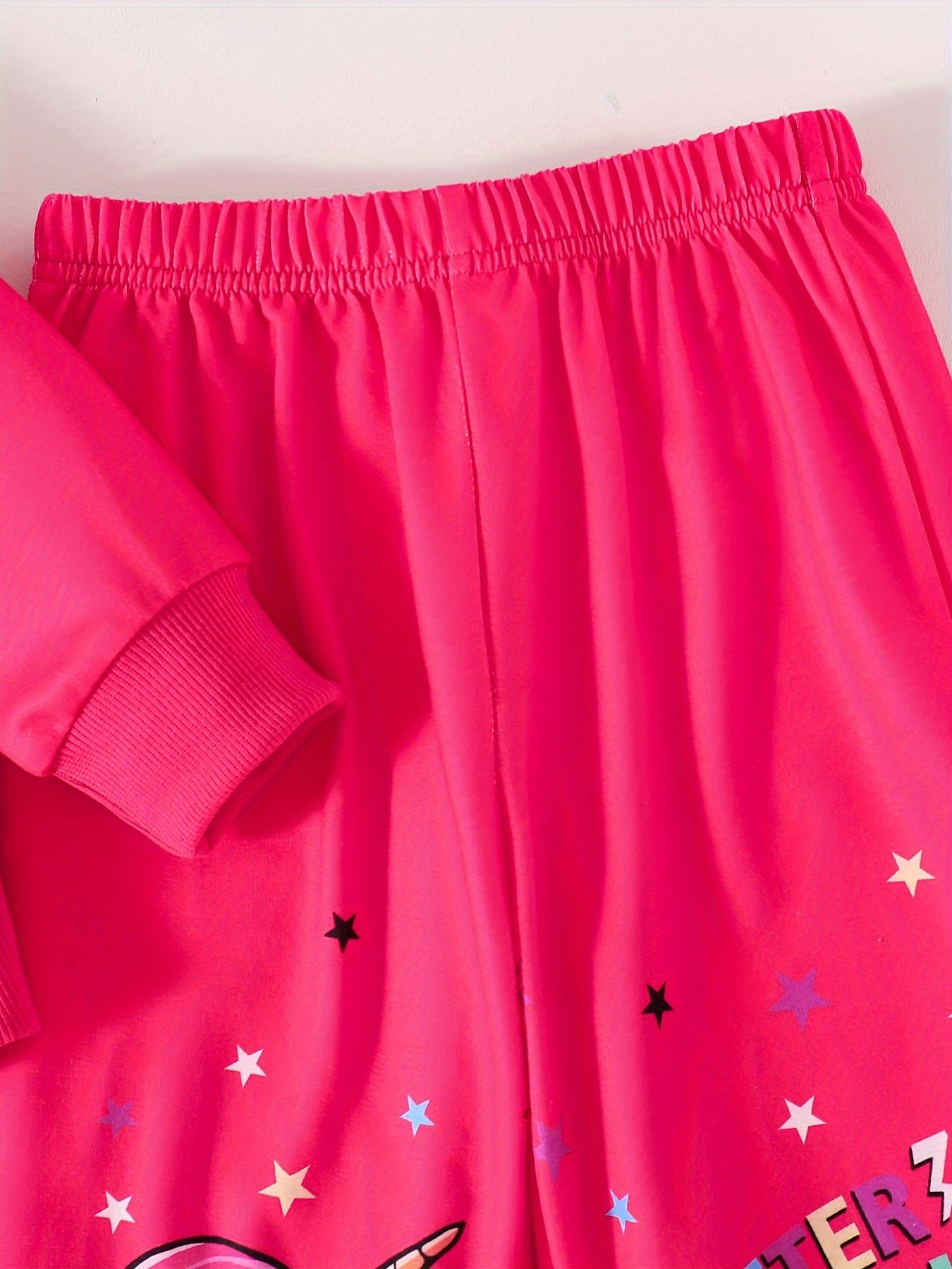 [Soft Girls' Two-Piece Set] Comfortable & Soft Two-Piece Set for Girls | Long-Sleeve Rainbow Horse & Star Print Sweatshirt with Elastic Waist Jogger Pants - Fashionable Activewear for Sweet Street Style & Outdoor Casual Wear