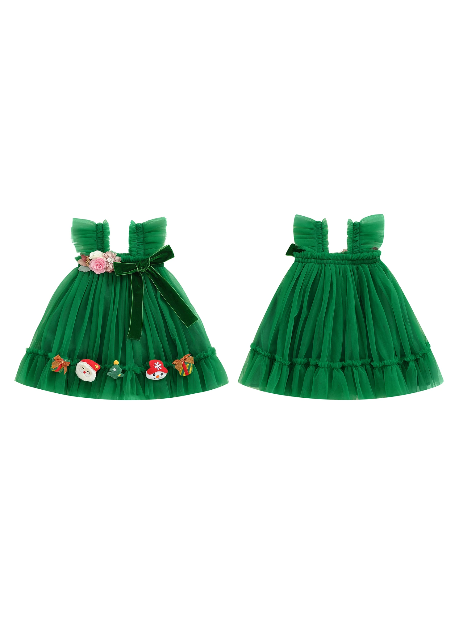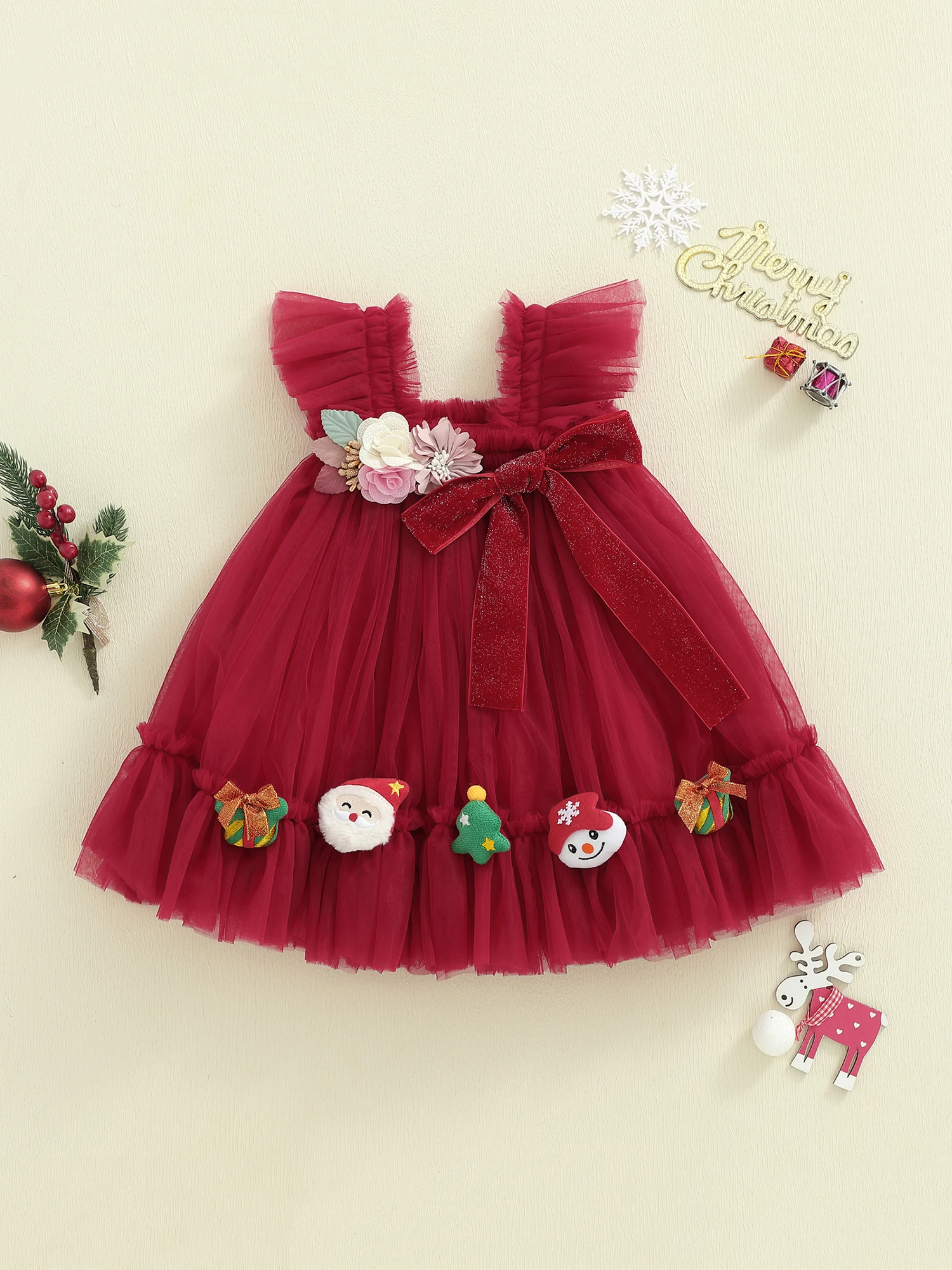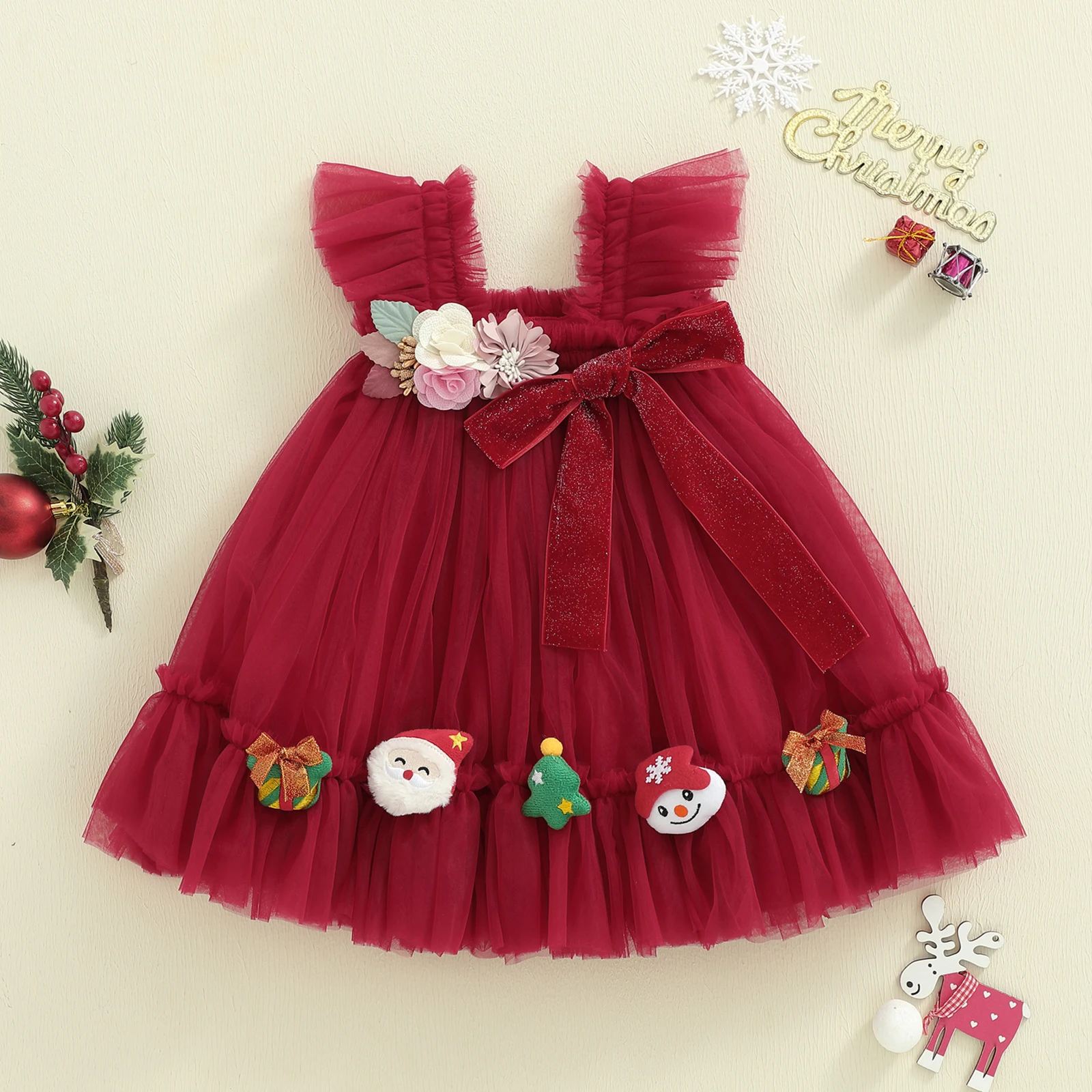 - Festive details: bold 3D flowers and a charming Santa bow add instant holiday charm to any outfit.