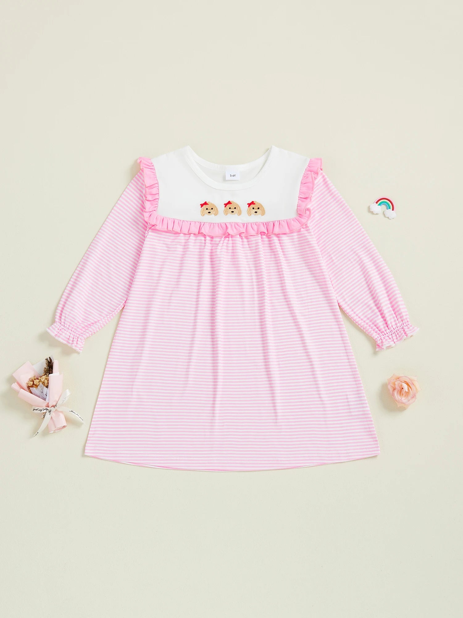 Toddler Girl Winter Knit Sweater Dress With Bear Embroidery