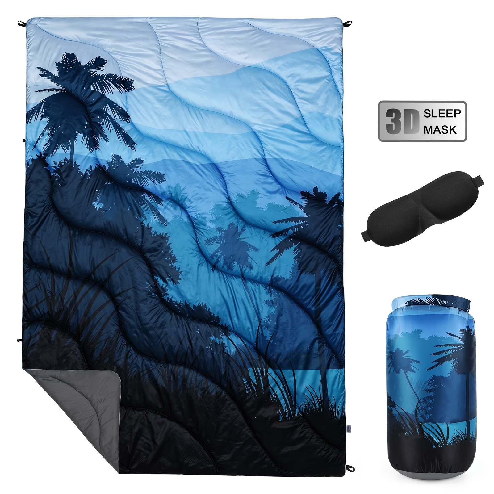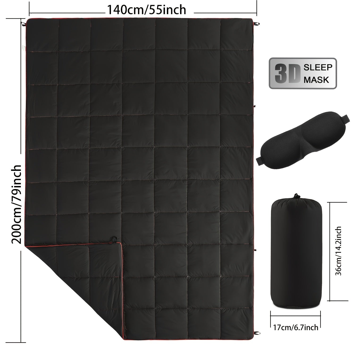 Ultra-Lightweight High Quality & Windproof Puffy Camping Blanket - All-Season Down Alternative Insulation, Portable Compact Travel Blanket with Carry Case, Fill for Camping, Hiking, Beach, Picnic, Indoor/Outdoor Use - Machine
