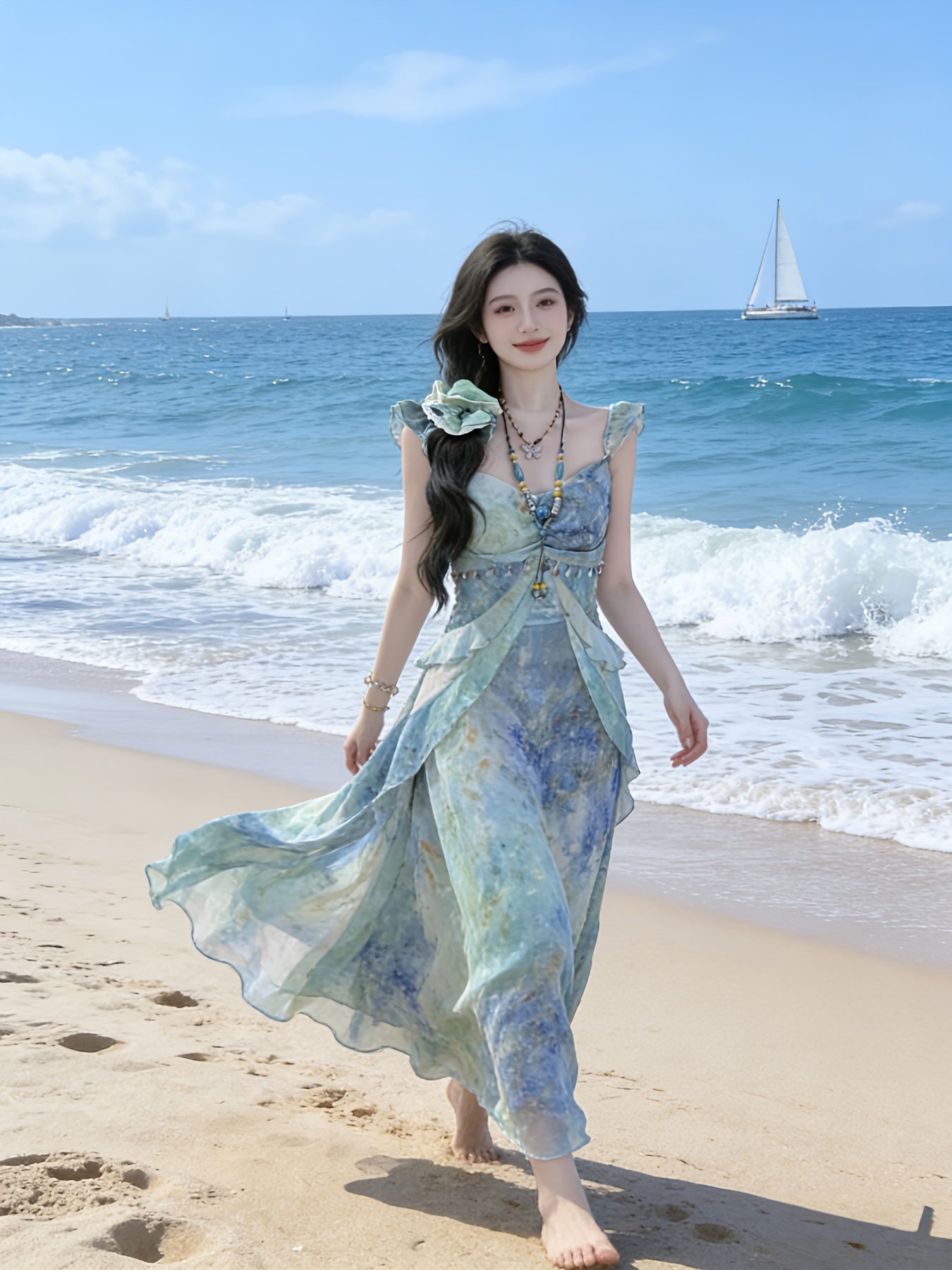 Vacation Style Tie-Dye Chiffon New Camisole Elegant Dress for Women, Printed Slim-Fit Fairy Maxi Dress, Stunning Photo-Ready Dress, Perfect Gift Choice