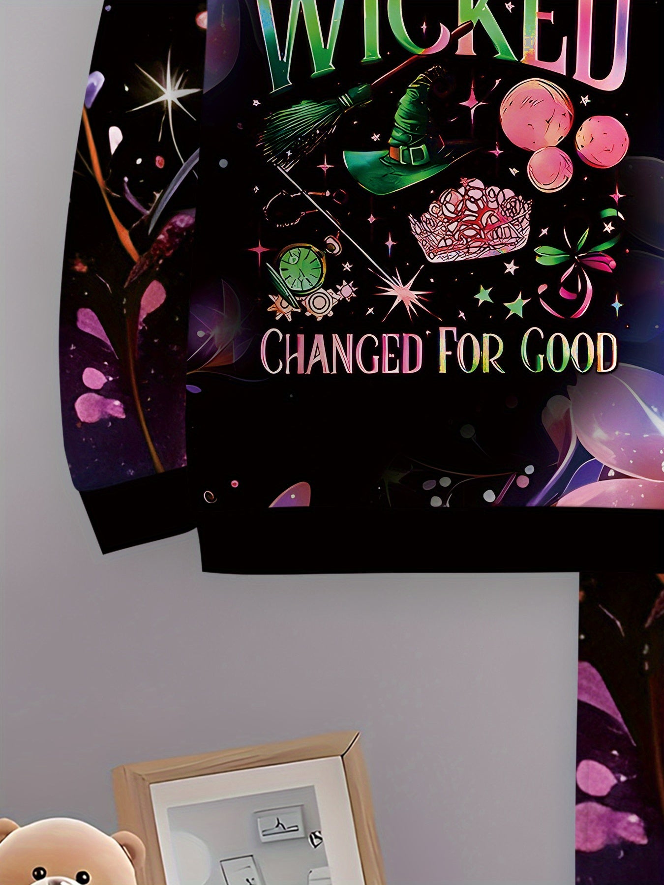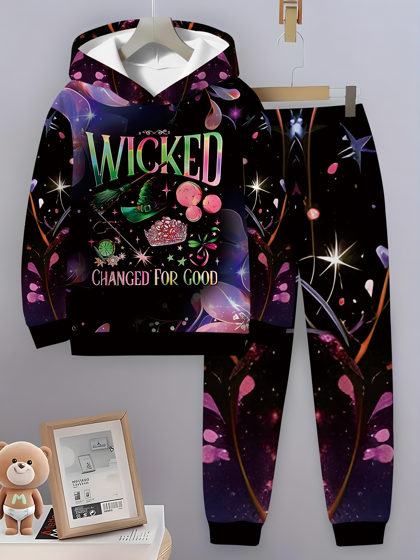 Wicked Themed 2pcs Girls' 3D Print Hoodie and Pants Set, Fashionable Casual Outfit, 100% Polyester Suitable for Girls Going Out, Perfect Gift for Girls, Perfect for Outdoor