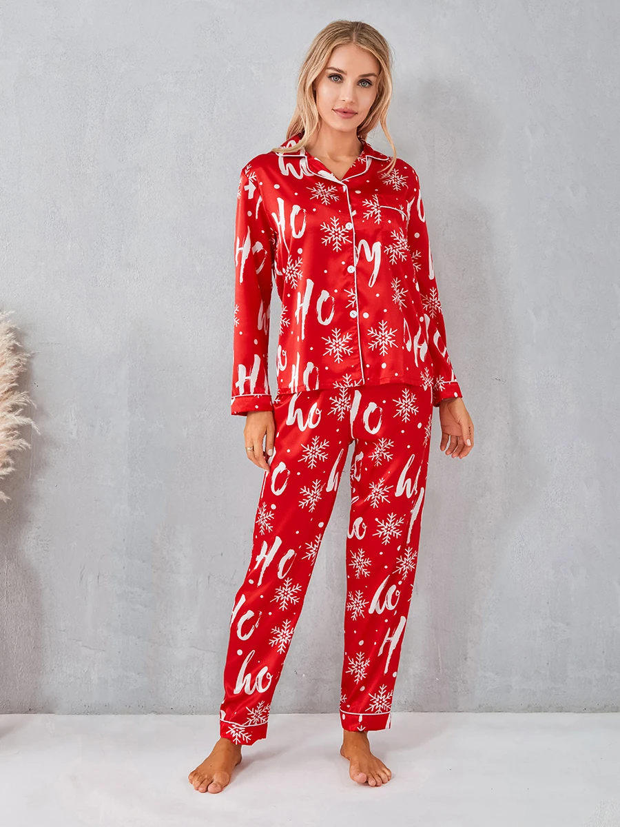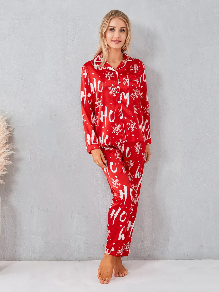 Womens 2 Piece Pajamas Set Christmas Long Sleeve Button Up Shirt + Pants Set Sleepwear LoungewearFeatures: