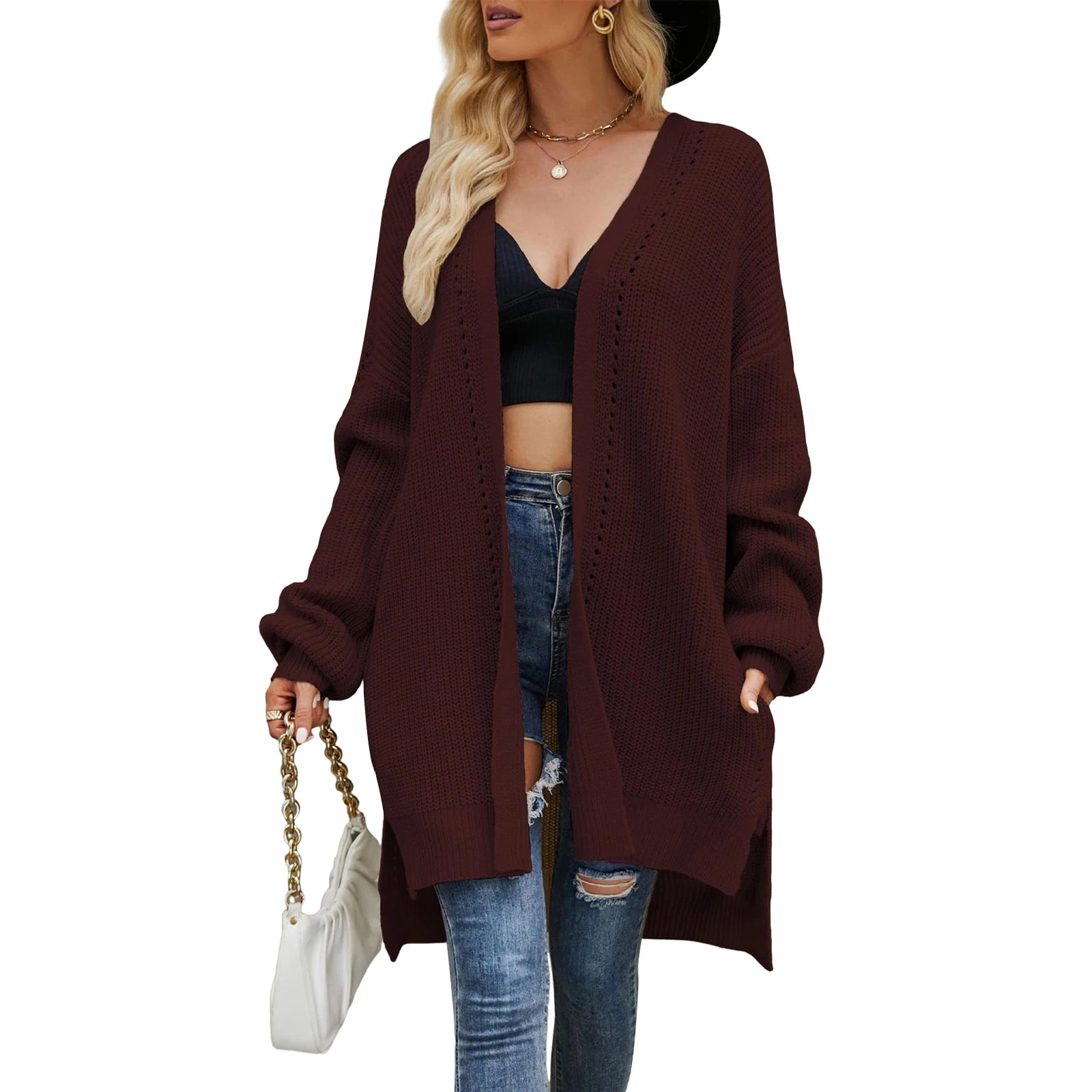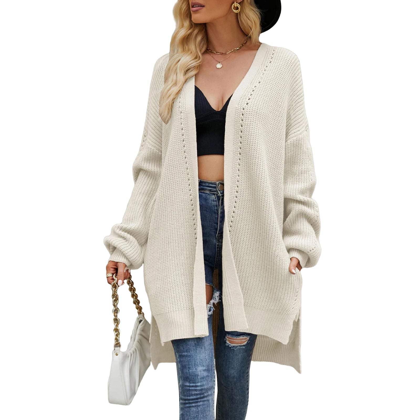Women Autumn Winter Knit Cardigan Long Sleeve Open Front Split Hem Knitwear Sweater
