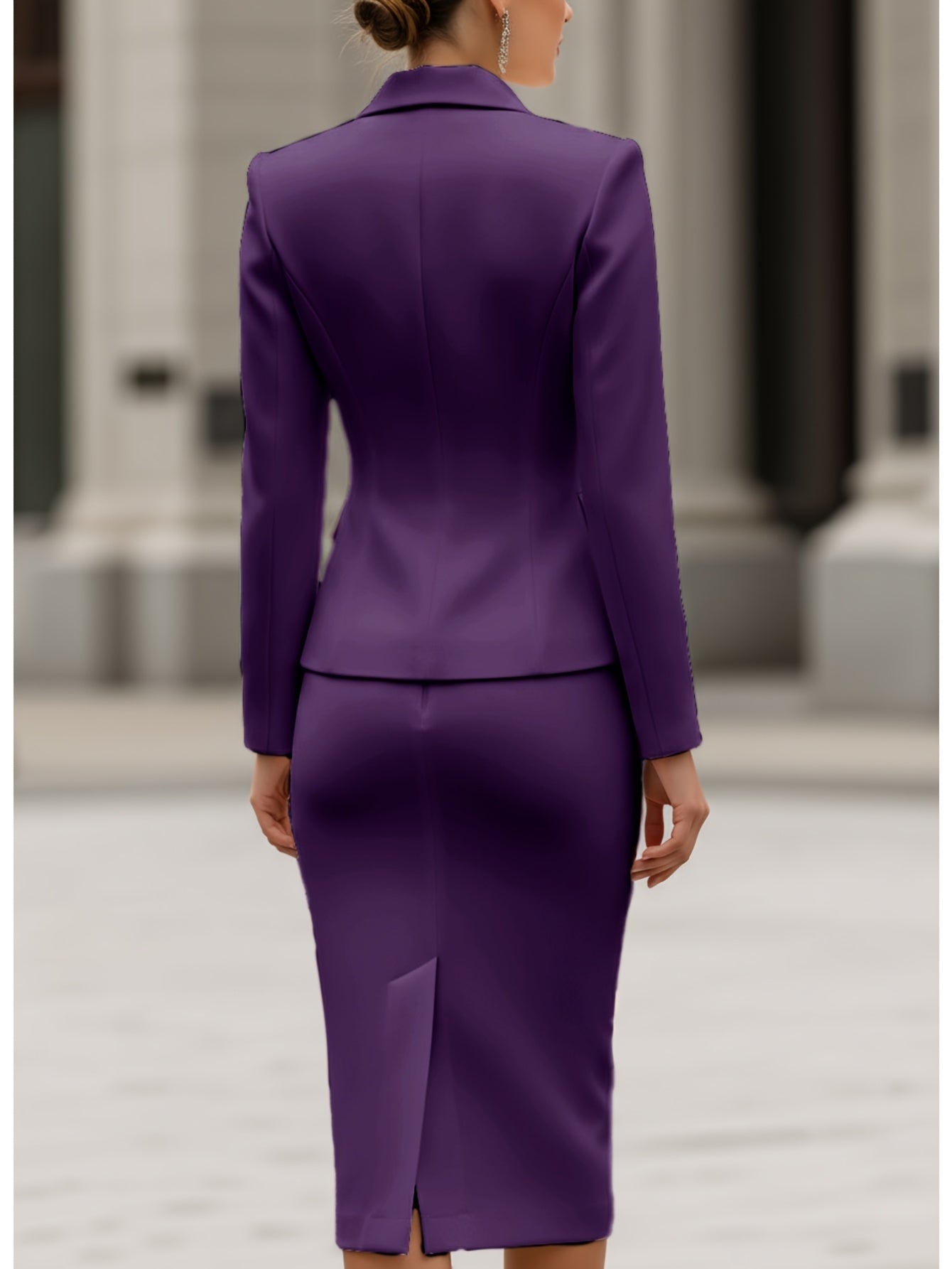 Women's Double-Breasted Blazer + Pencil Skirt Two-Piece Set | Suitable for Office Commuting, Formal Occasions, Creating a Polished Slim-Fitting and High-End Outfit