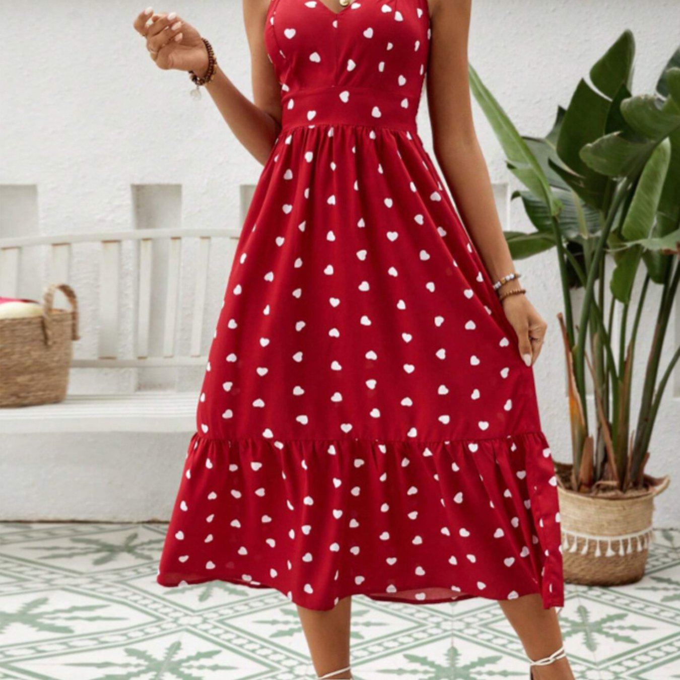 Women's Heart Print Dress Casual Valentine Style Summer Elegant