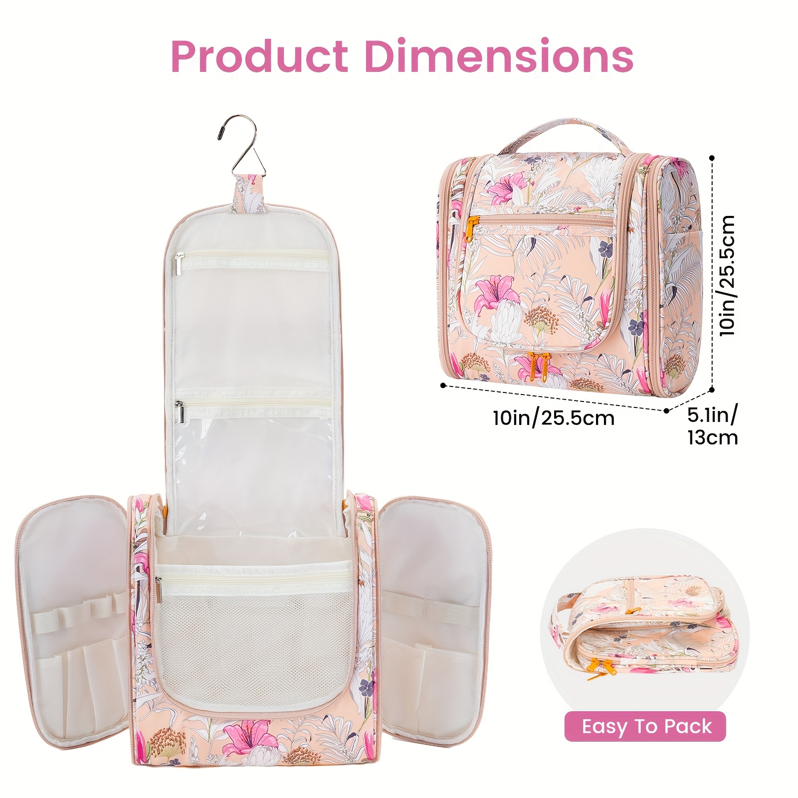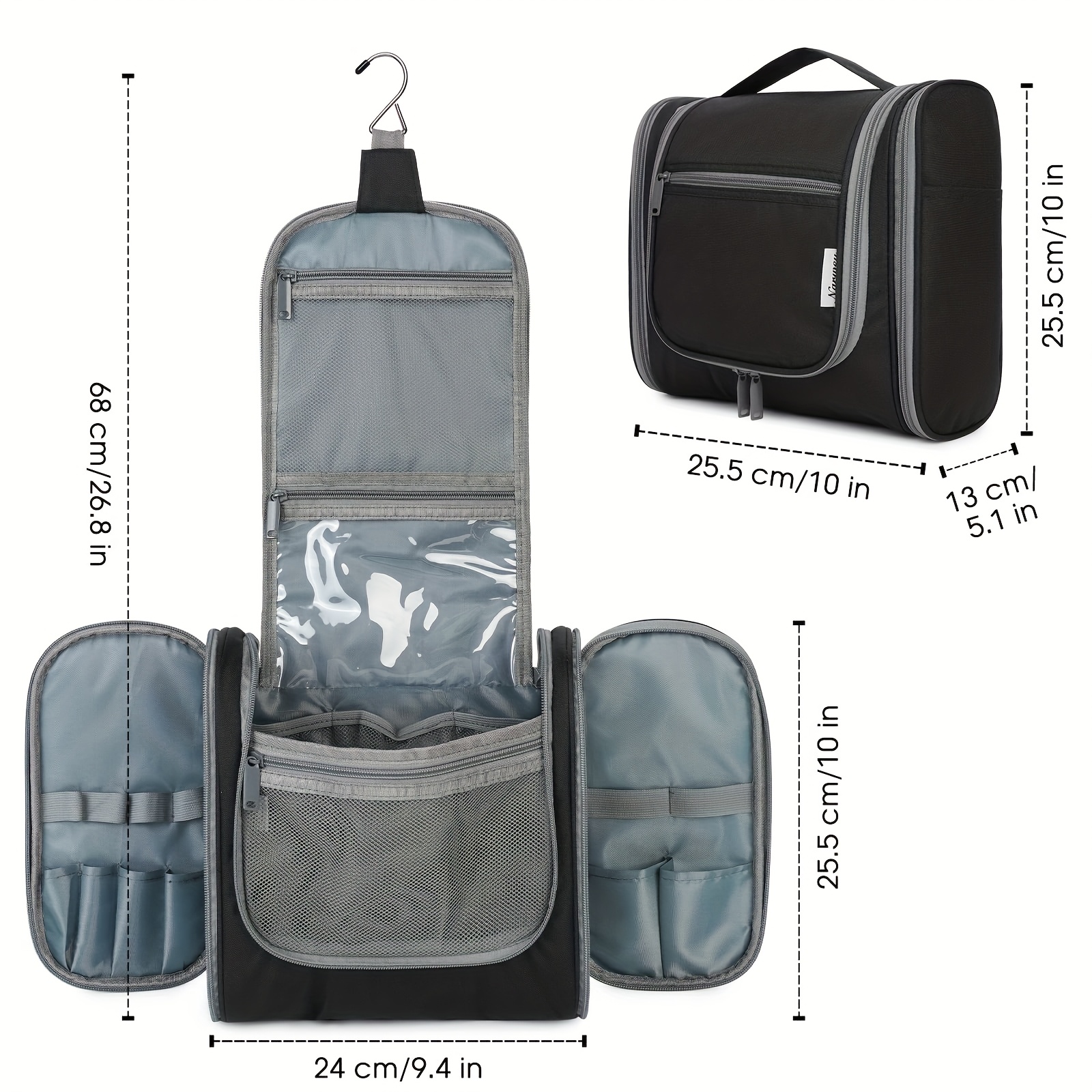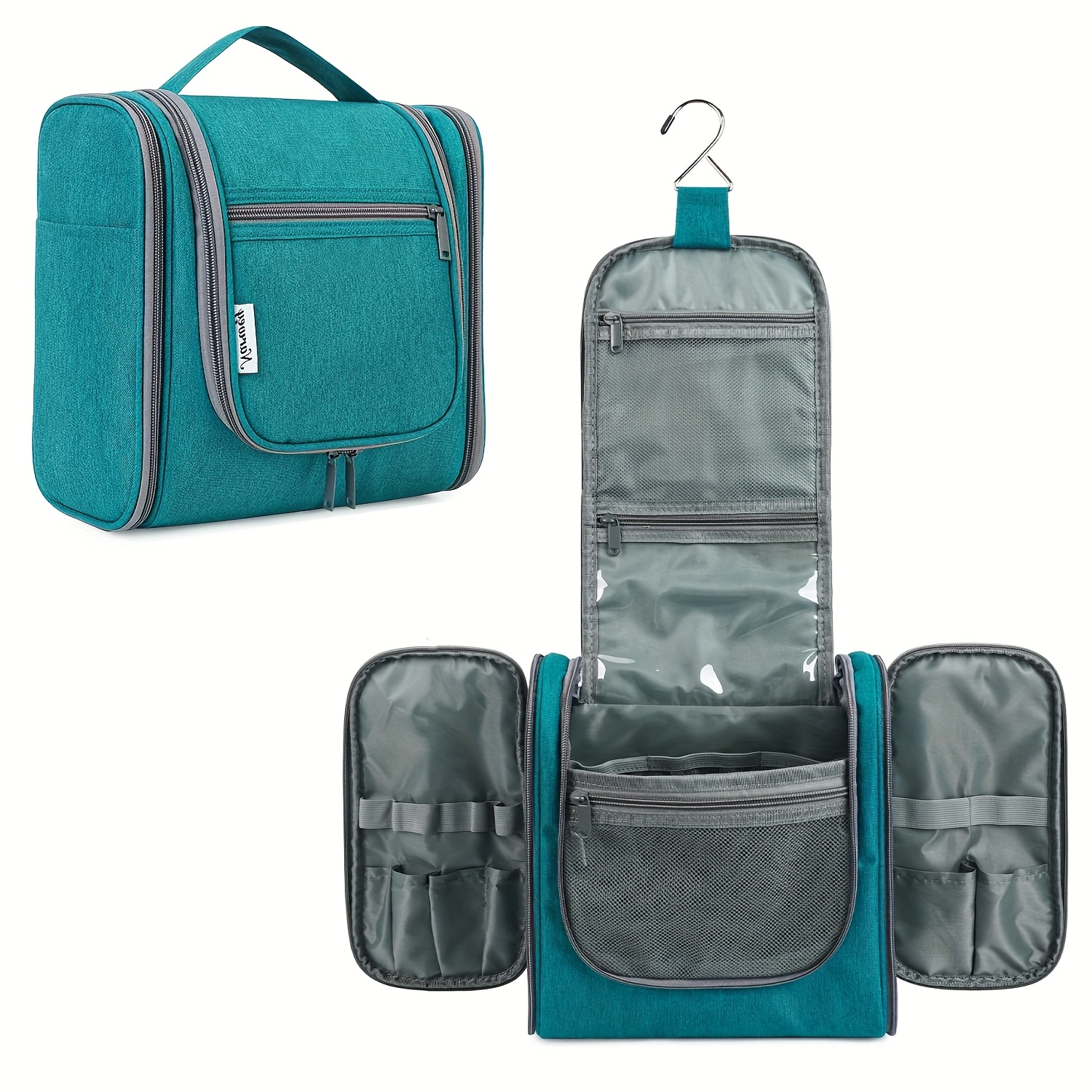 DETAILS ORIENTED - Buit-in large metal hook allows hanging the toiletry case from towel rack, coat hook or whereever is available