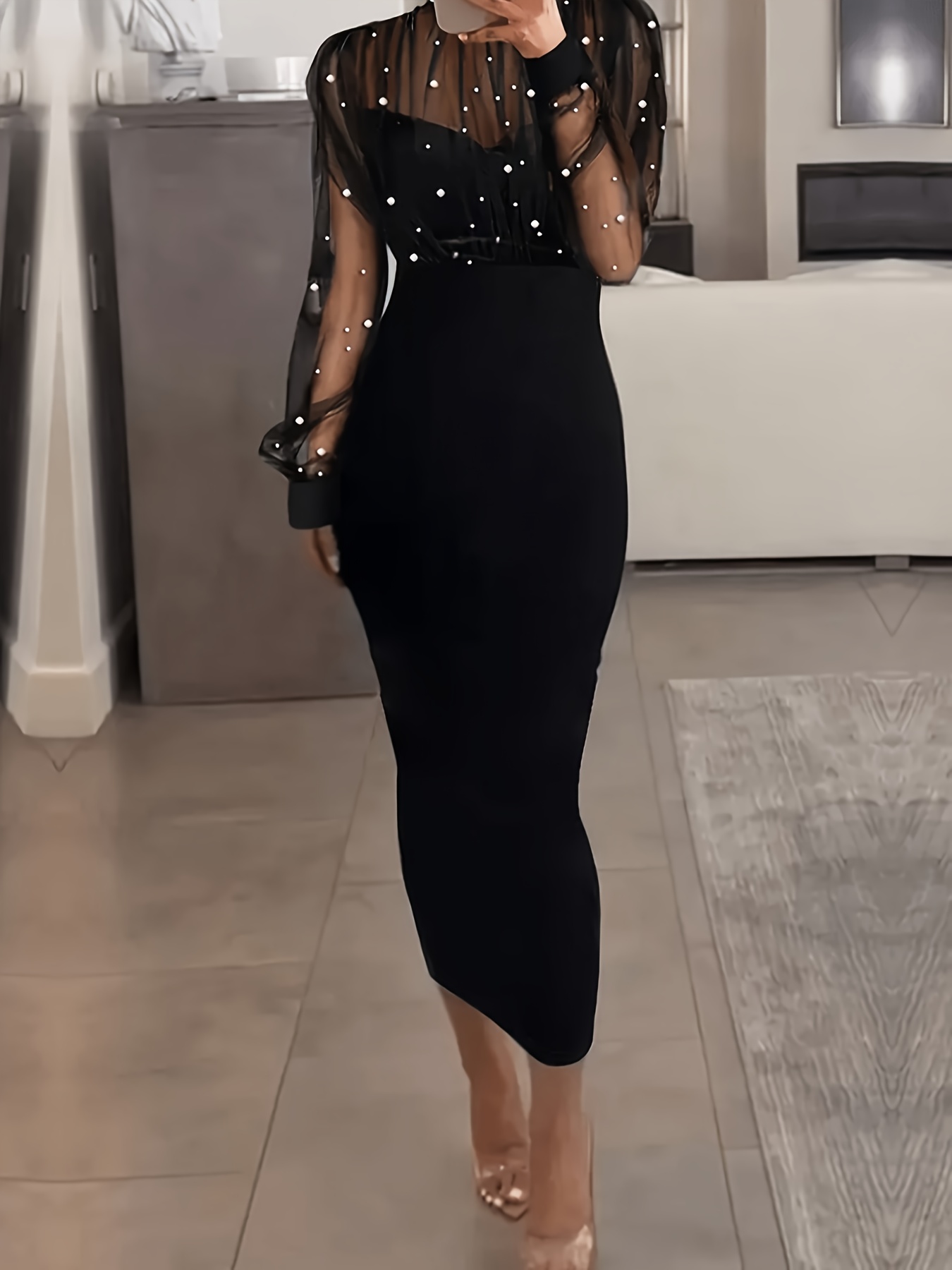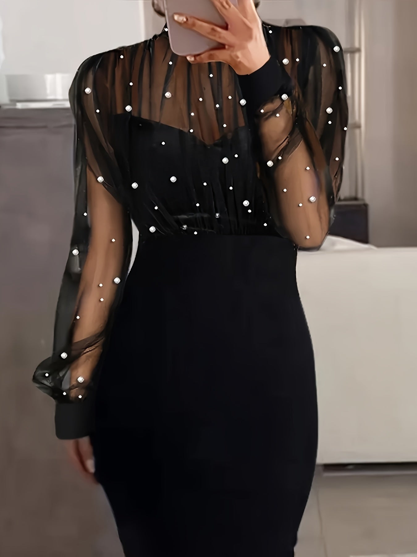 Women's New Elegant Fashion Pearl Chiffon Stitching Sexy Hip Dress